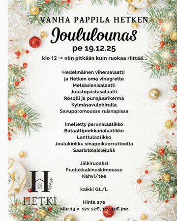 Tule nauttimaan joulun tunnelmasta, hyvästä ruuasta ja lämmöstä, joka syntyy aidosta yhdessäolosta.